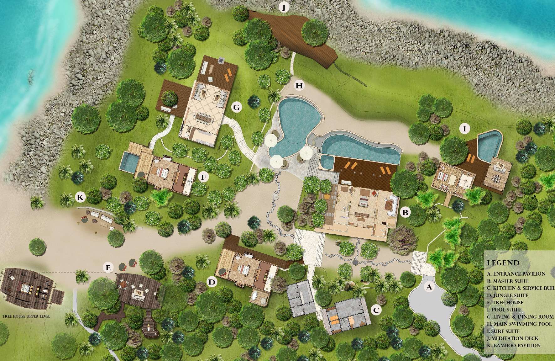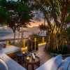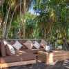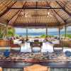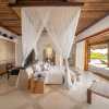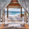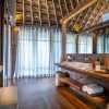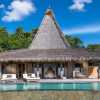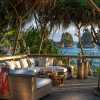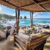 Tropical waterfront luxury is expressed with an expansive ironwood sun deck, a freeform infinity swimming pool and a poolside Pavilion . Guests can settle in and laze the day away in the private thatched living and dining Pavilion with its cool white limestone stone floor and relaxing day bed, while blissfully watching the endless parade of waves pass by.