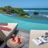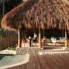 There are 4 swimming pools. The main freeform infinity pool with white Palimanan stone decks & wood sunbeds & sun umbrellas, a 22m long infinity lap pool at Menara Villa, a private pool with a large wooden deck and a furnished Bale’ at the Surf Villa & a plunge pool at the Pool Villa.