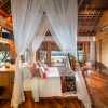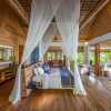 Tucked away and hidden by the lush tropical foliage and trees surrounding the SURF VIEW VILLA, the air-conditioned bedroom overlooks the wooden sun deck and enjoys uninterrupted ocean views. The natural style bedroom offers cozy luxury, with wooden floors and wall, a soft cotton mosquito net draped around the double bed, an ensuite bathroom and walk-in dressing room. Other facilities include a mini bar, coffee & tea service, Bluetooth stereo, and a large 65” flat screen Satellite TV should you wish to re-experience your day’s video adventures, or catch up to news at the end of an evening.