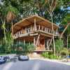An open-air dining and living room Pavilion with stunning sunset & ocean views, a fully equipped kitchen, guest toilet and a four-speaker stereo system. The living & dining pavilion is surrounded by two large furnished wooden decks and a fireplace. There is a furnished beachside bamboo bale’ with a mini-fridge and hammock, and also a waterfront chill area under the trees for yoga, meditation, reading.
